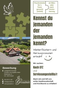 Stellensuche Koch und Service 2026 A4-5 - Landgasthof Grossteil in Giswil